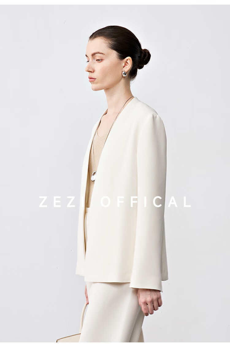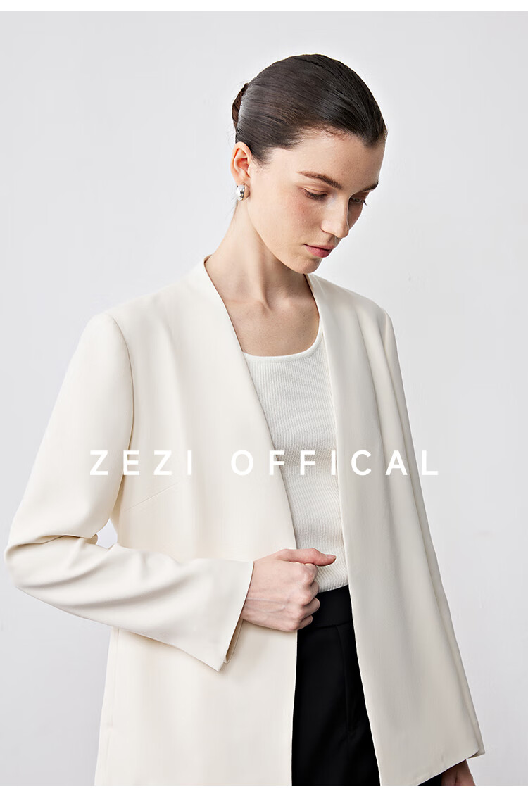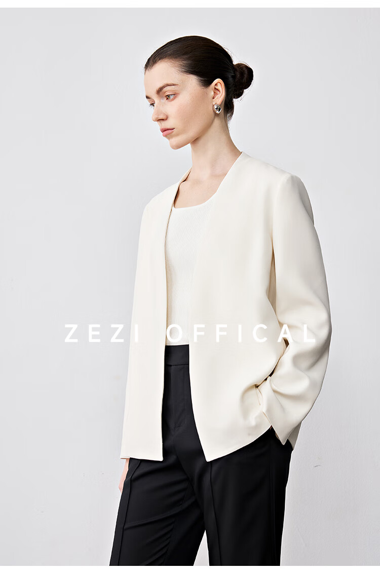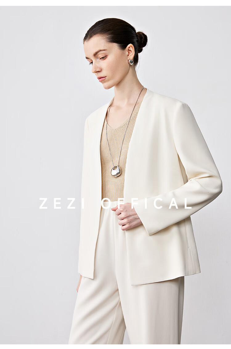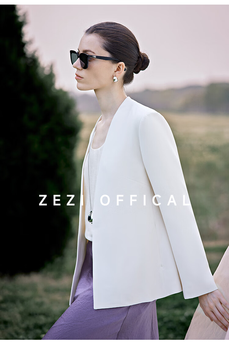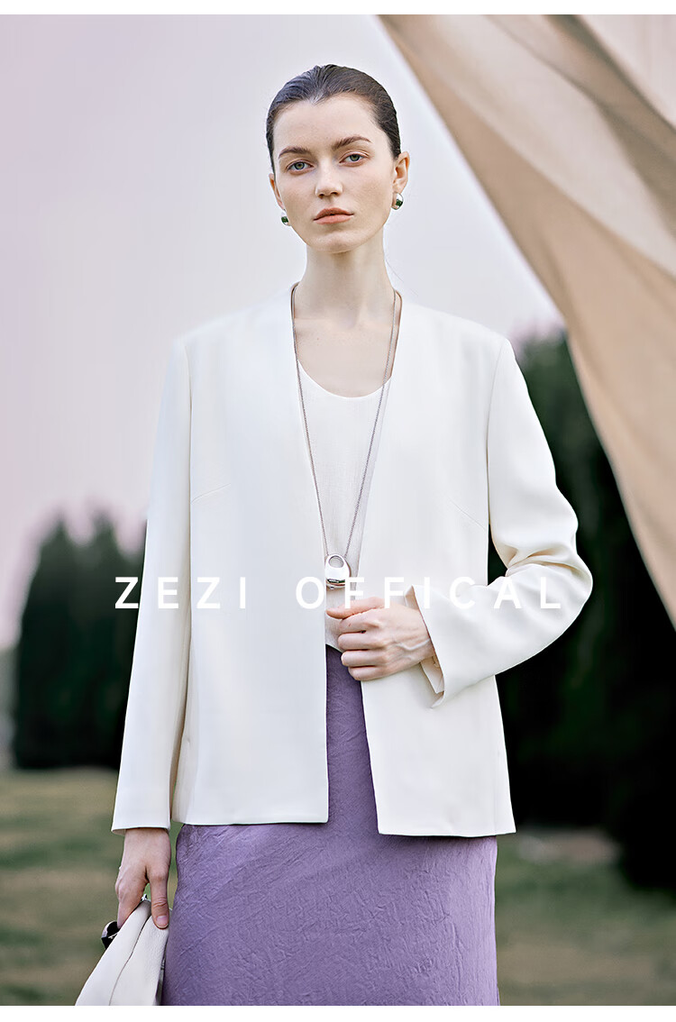 ZEZI凯特无领小西装女进口三醋酸西服外套极简气质百搭时尚春夏新款 云泥白 M (100-110斤)