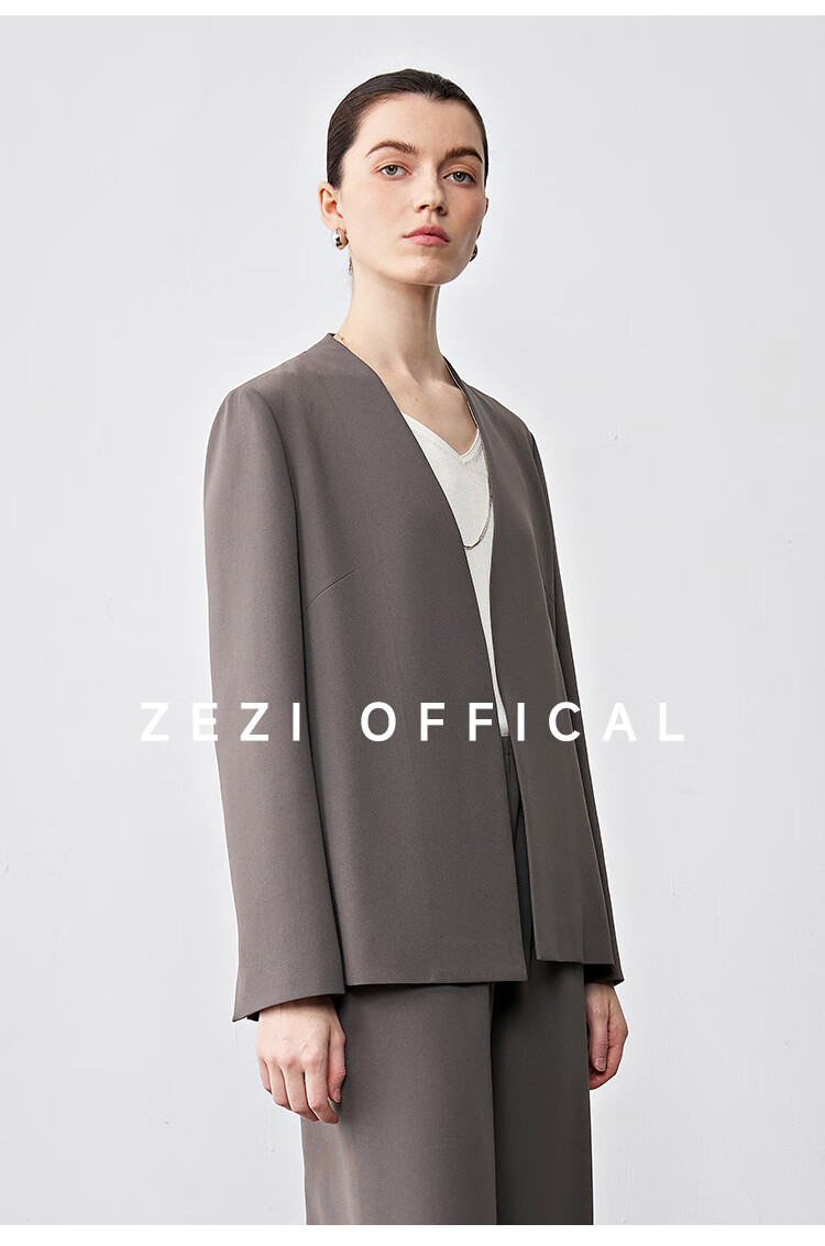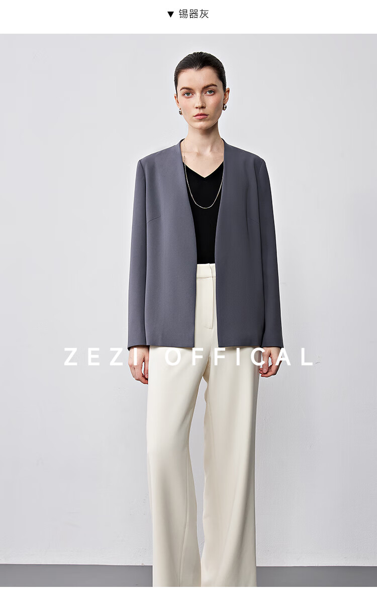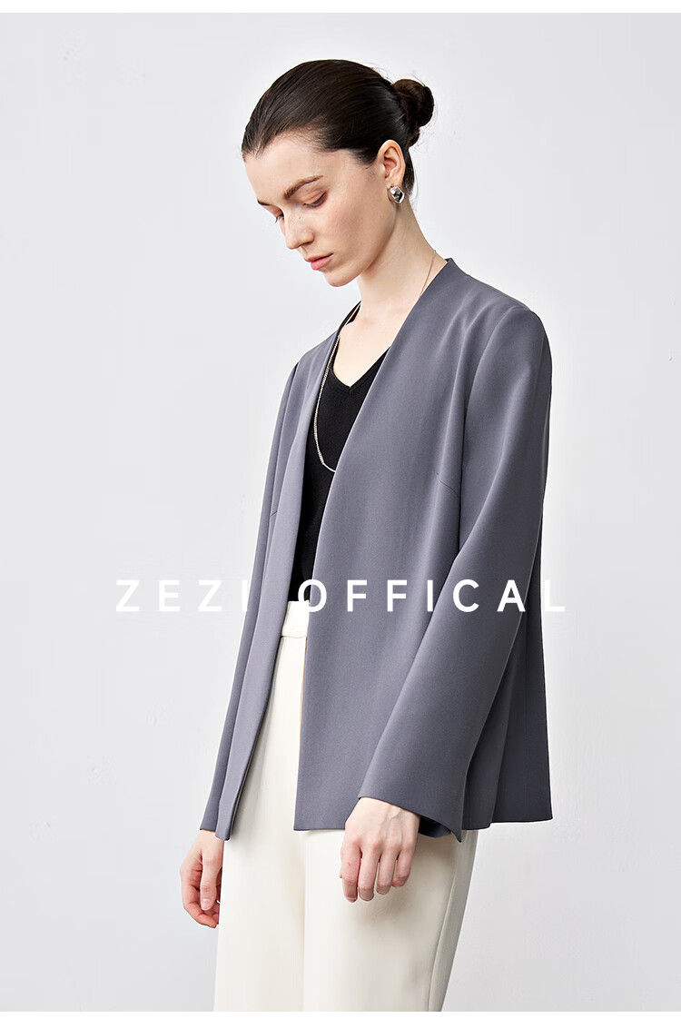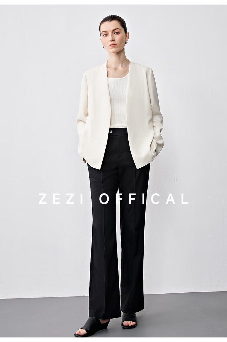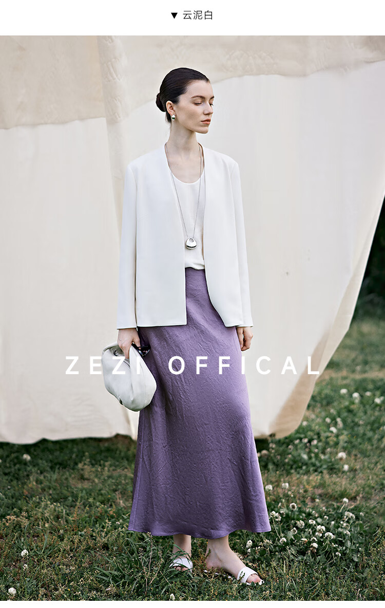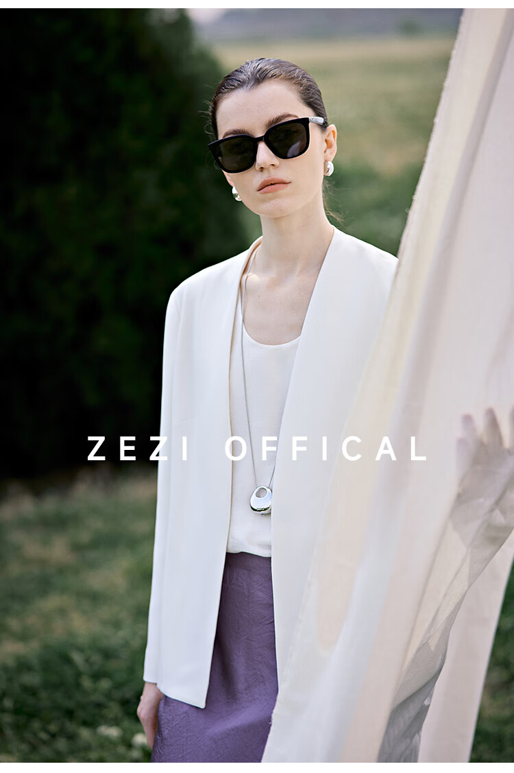 ZEZI凯特无领小西装女进口三醋酸西服外套极简气质百搭时尚春夏新款 云泥白 M (100-110斤)