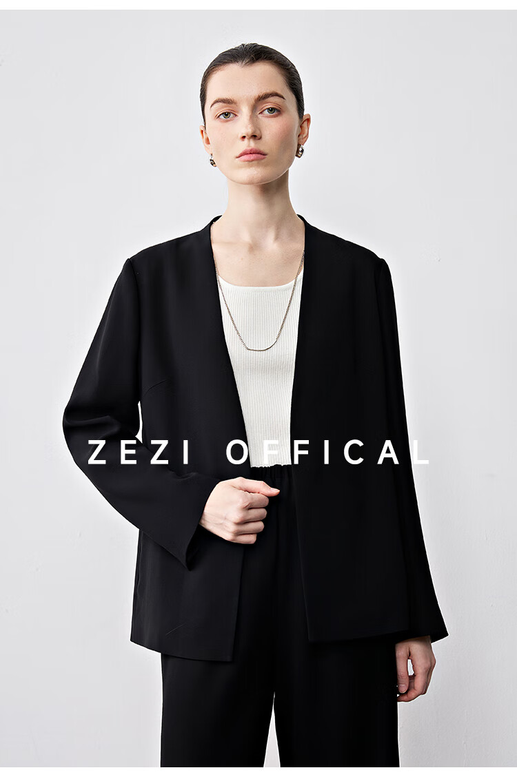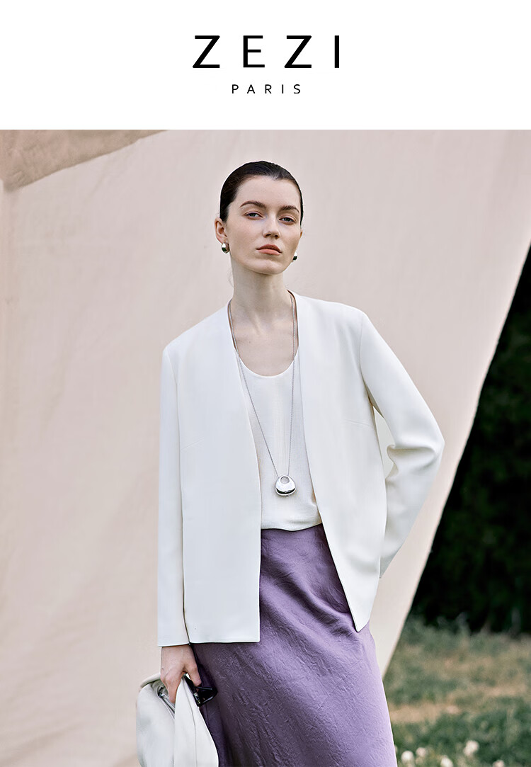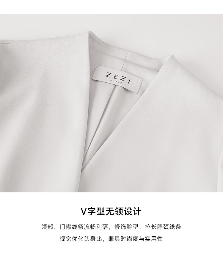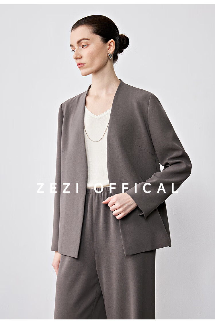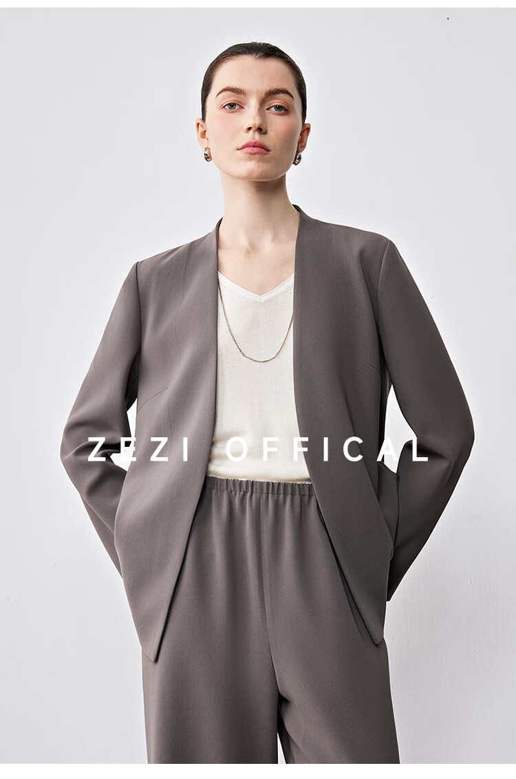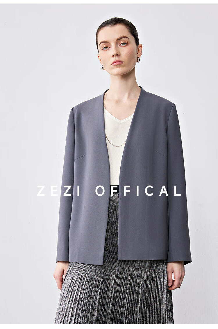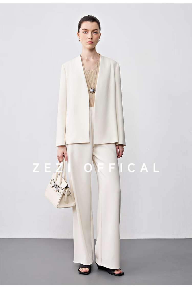 ZEZI凯特无领小西装女进口三醋酸西服外套极简气质百搭时尚春夏新款 云泥白 M (100-110斤)