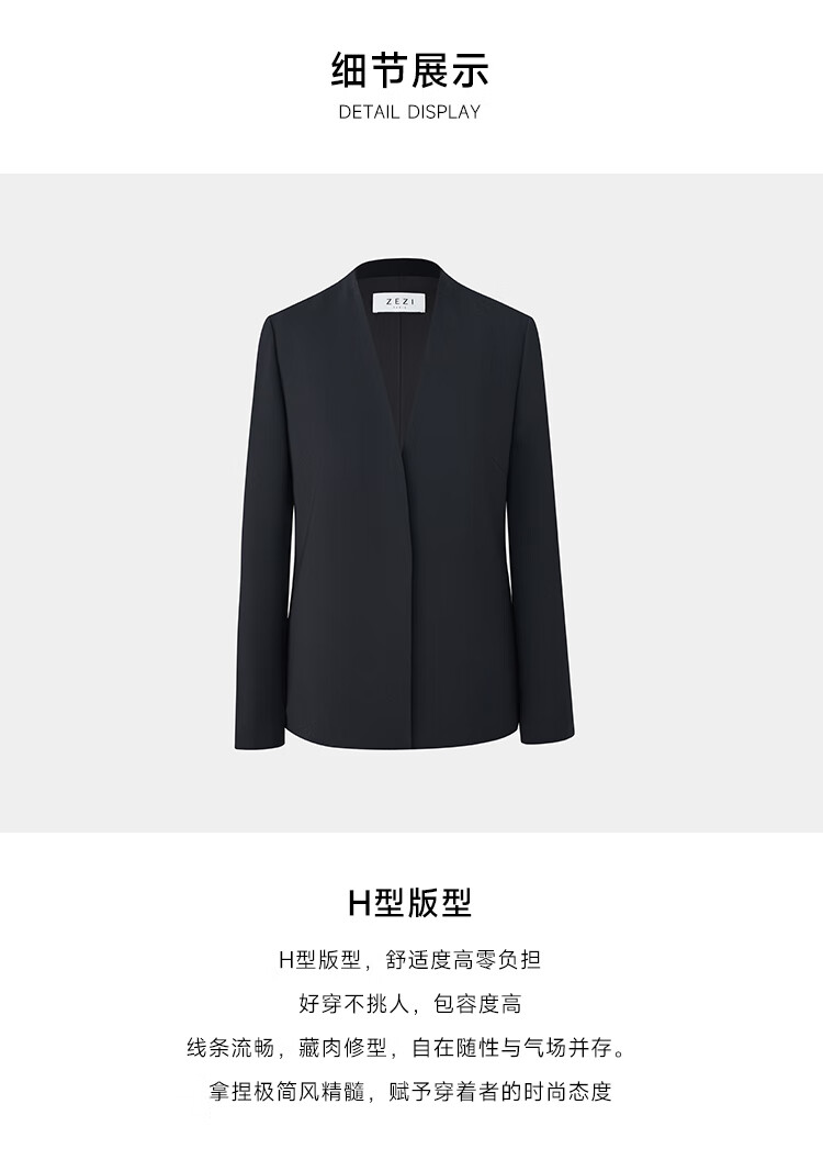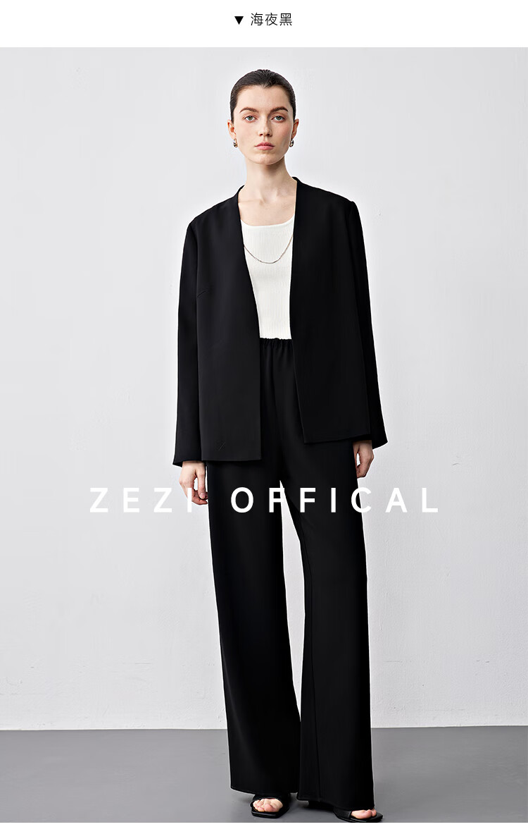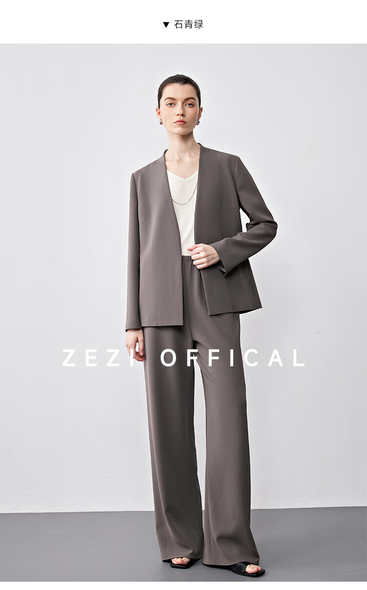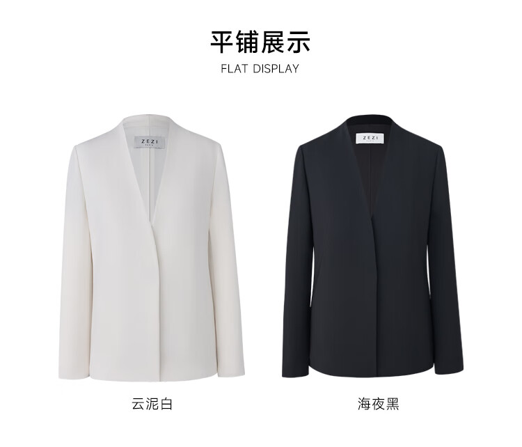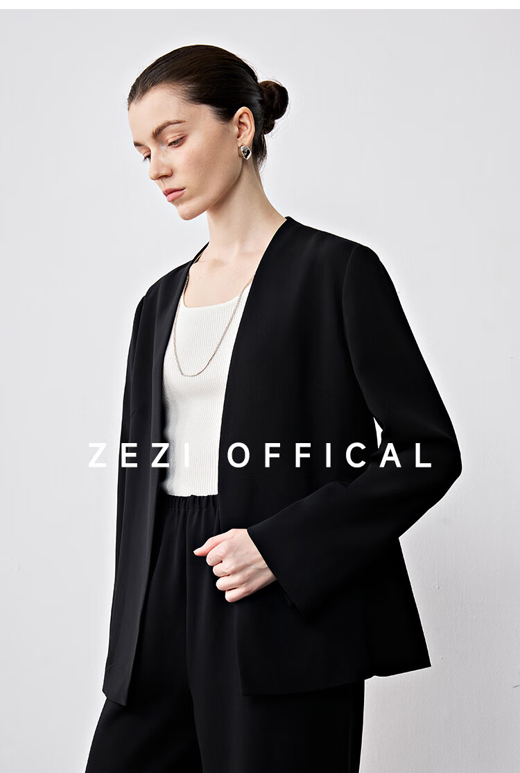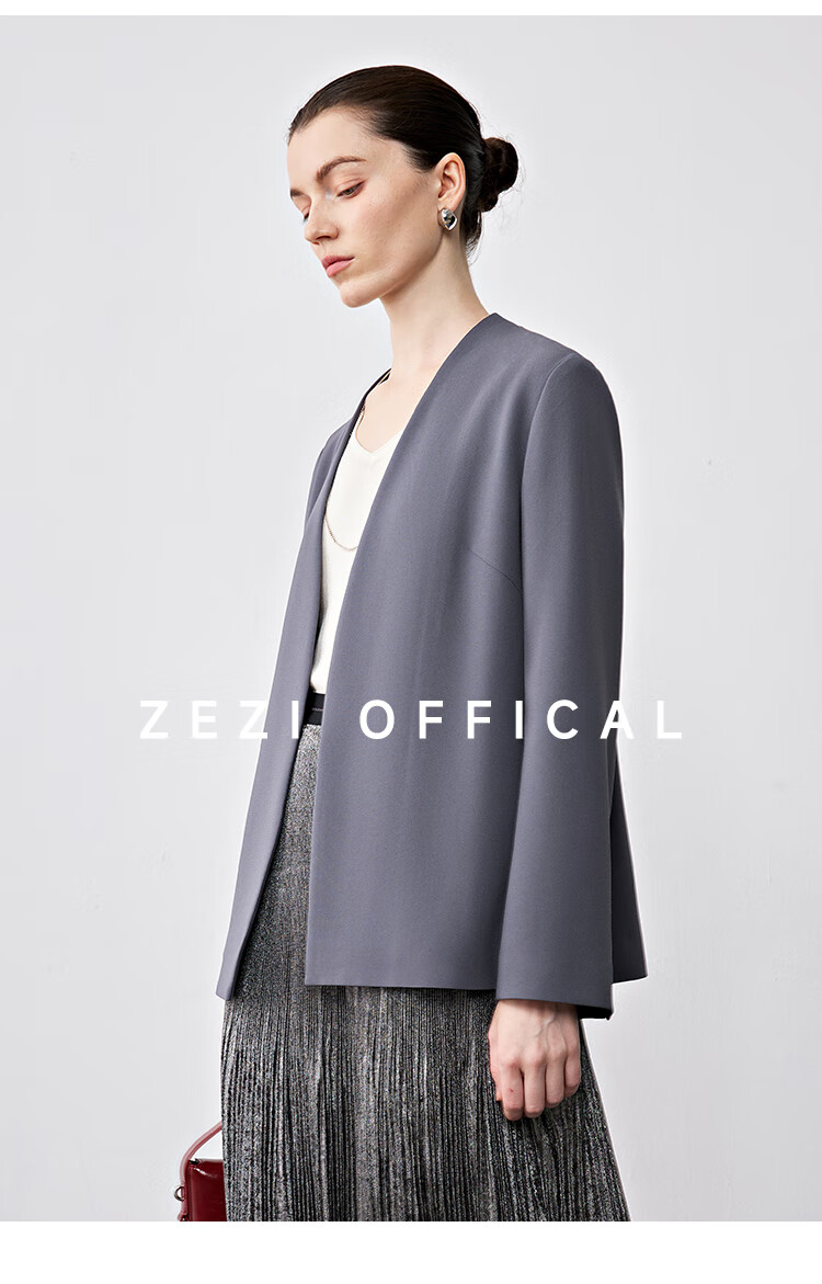 ZEZI凯特无领小西装女进口三醋酸西服外套极简气质百搭时尚春夏新款 云泥白 M (100-110斤)