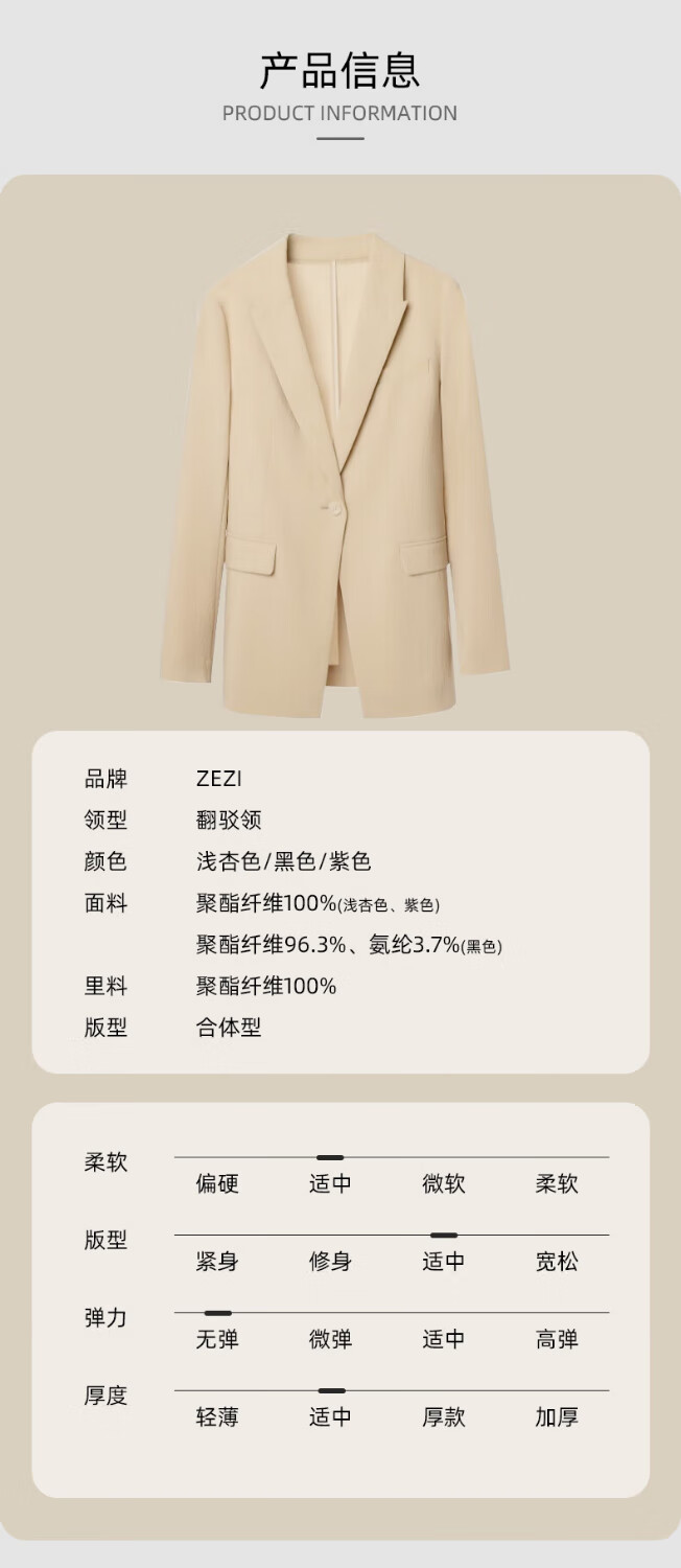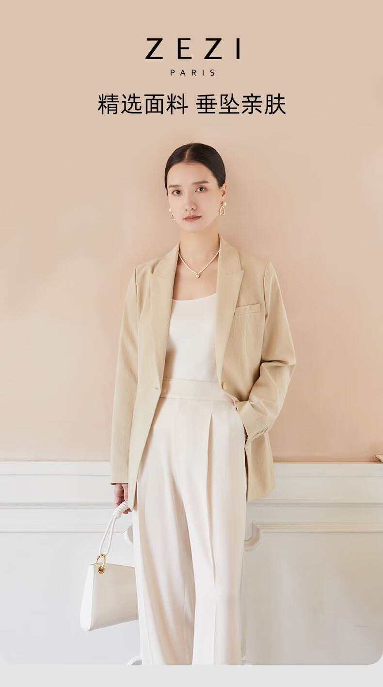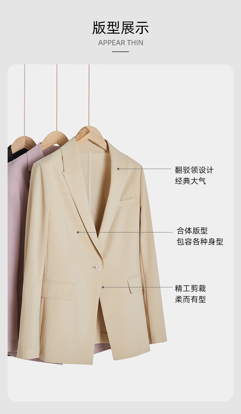ZEZI夏季薄款小西装空调间外套女新品轻薄防晒通勤职业装气质职场穿搭 浅杏色 S(90-100斤)