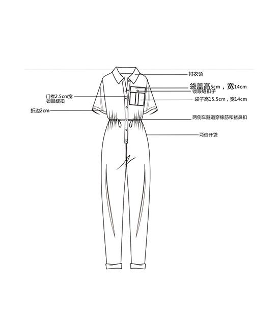 折边衬衣领连体裤