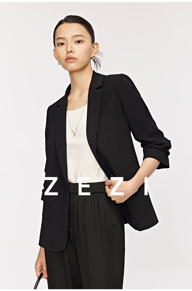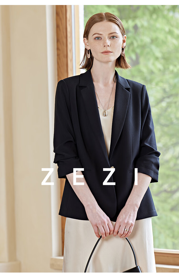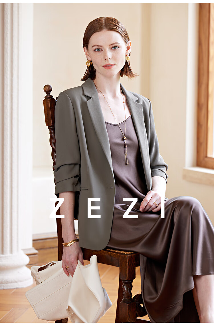 ZEZI西装外套女夏季西服薄款七分袖醋酯通勤正装修身简约时尚职场穿搭 岩石灰 XXL