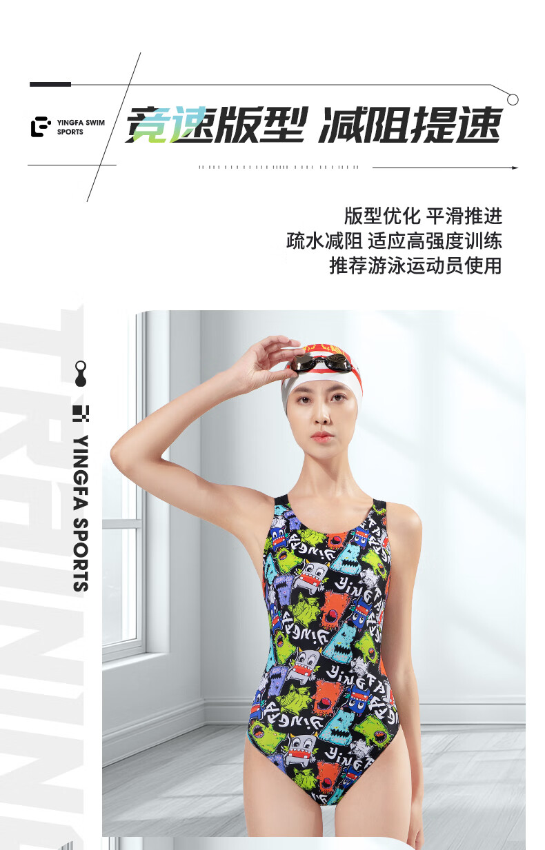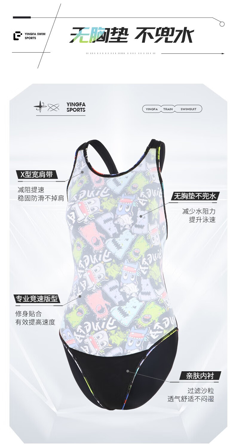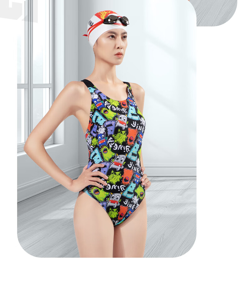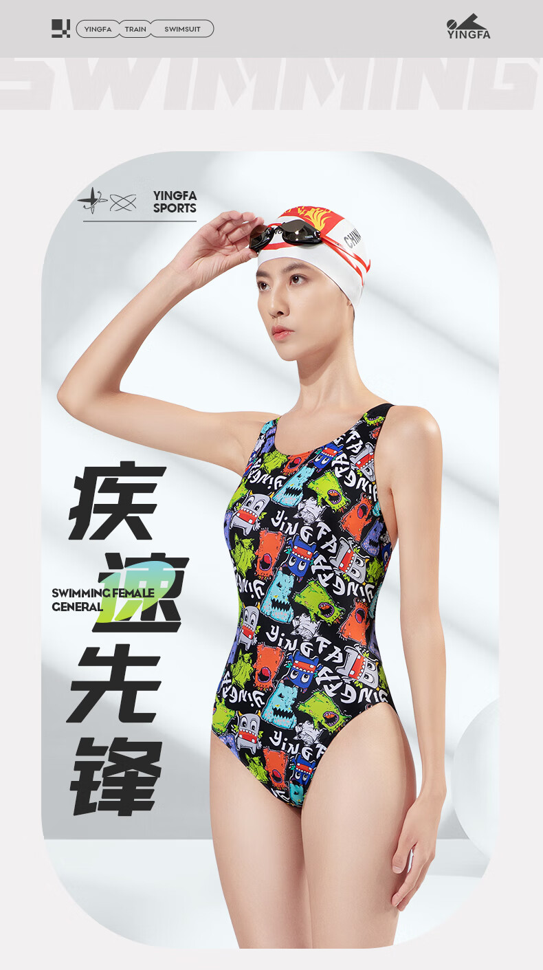 英发(YINGFA)泳衣女款2025年新款卡通印花连体专业训练泳馆专用比赛竞速游泳衣 花色 2XL (165-170厘米/53-60公斤)