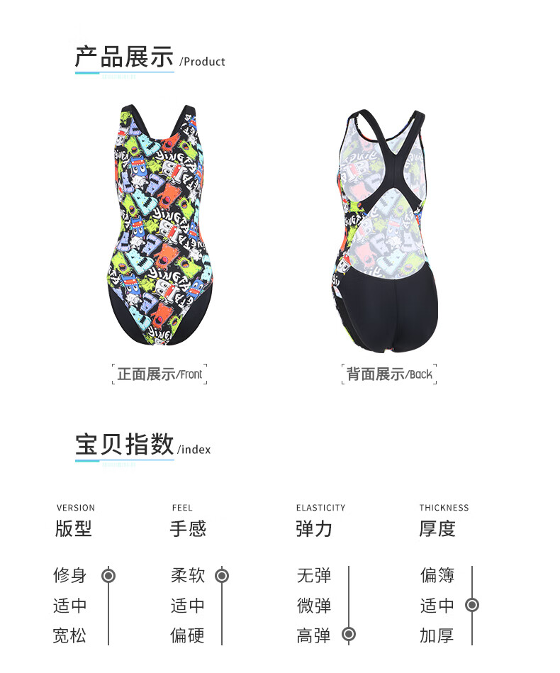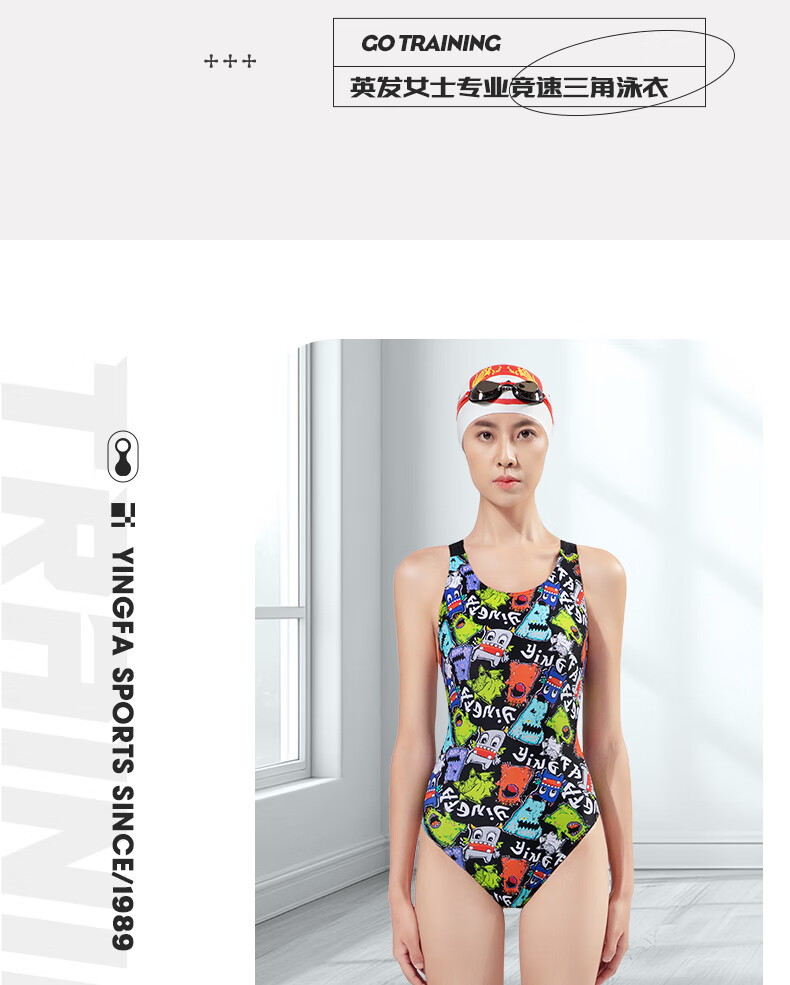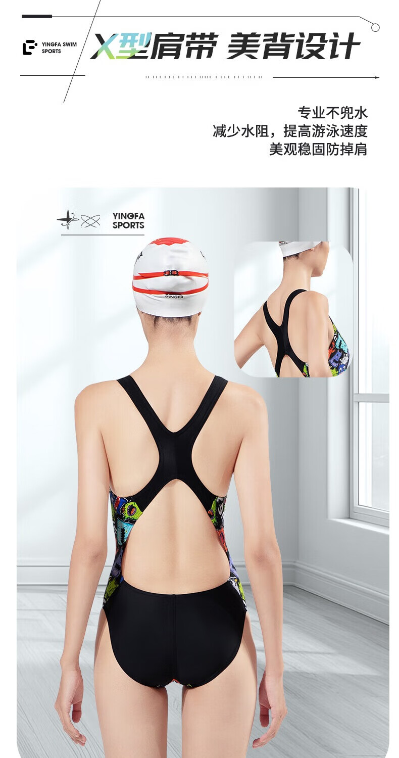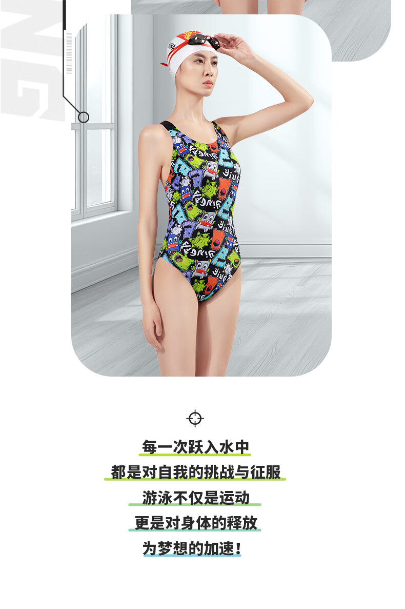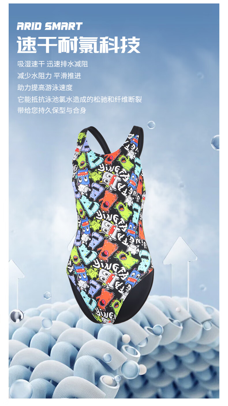 英发(YINGFA)泳衣女款2025年新款卡通印花连体专业训练泳馆专用比赛竞速游泳衣 花色 2XL (165-170厘米/53-60公斤)