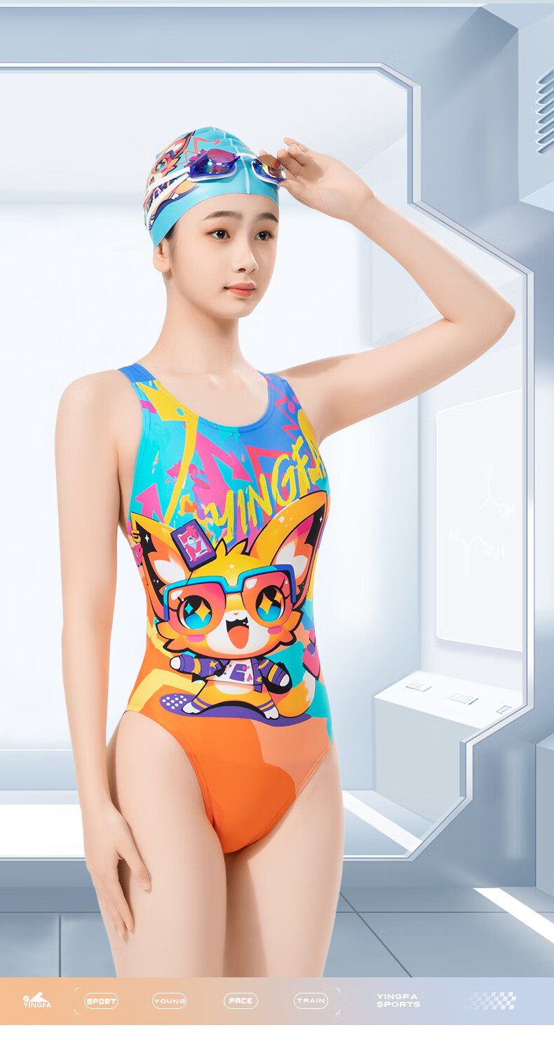 英发(YINGFA)竞技泳衣女新款连体三角防晒透气快干泳衣泡温泉印花显瘦运动泳装 花色 XS (建议125-135cm,15-25kg)