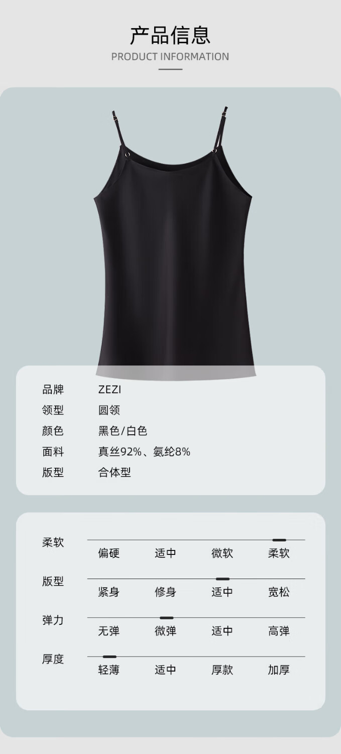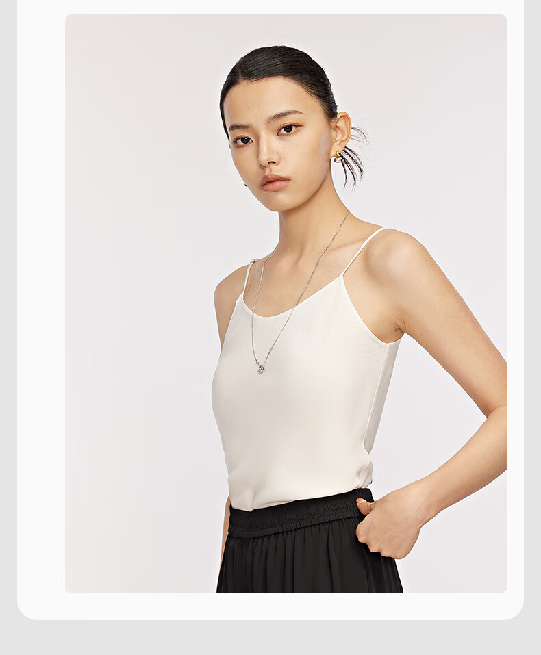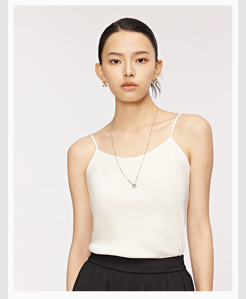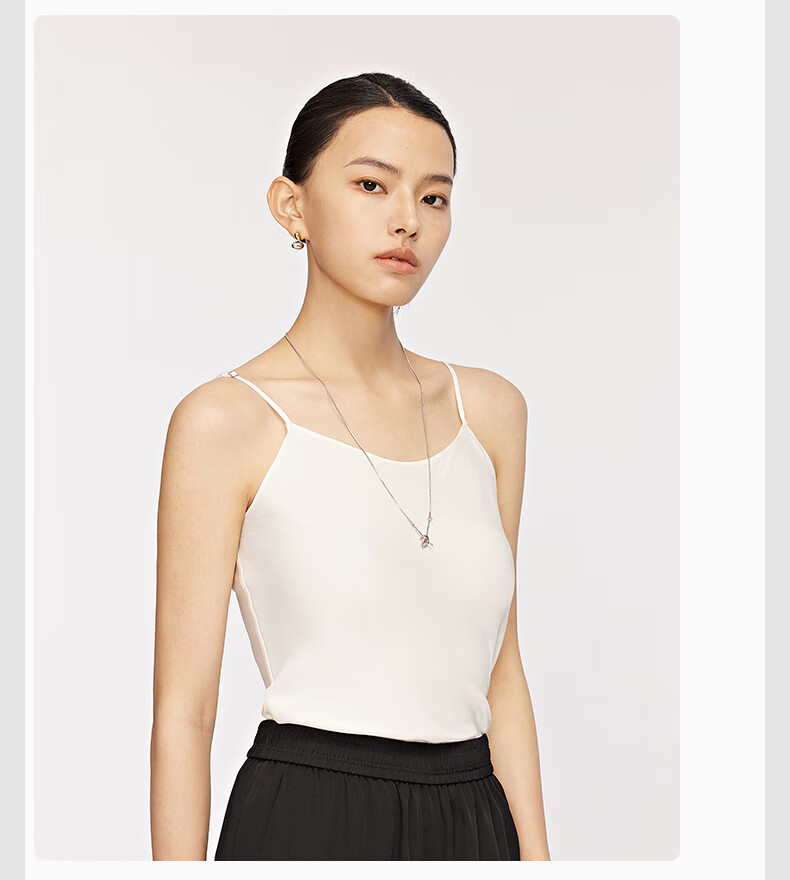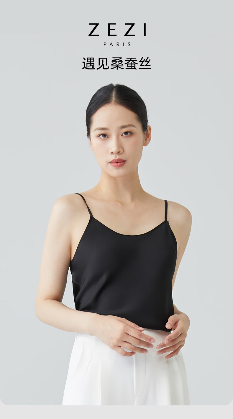 ZEZI重磅真丝小吊带白色背心女夏季新款桑蚕丝无袖打底衫西装洋气内搭 白色 现货 S (90-100斤)