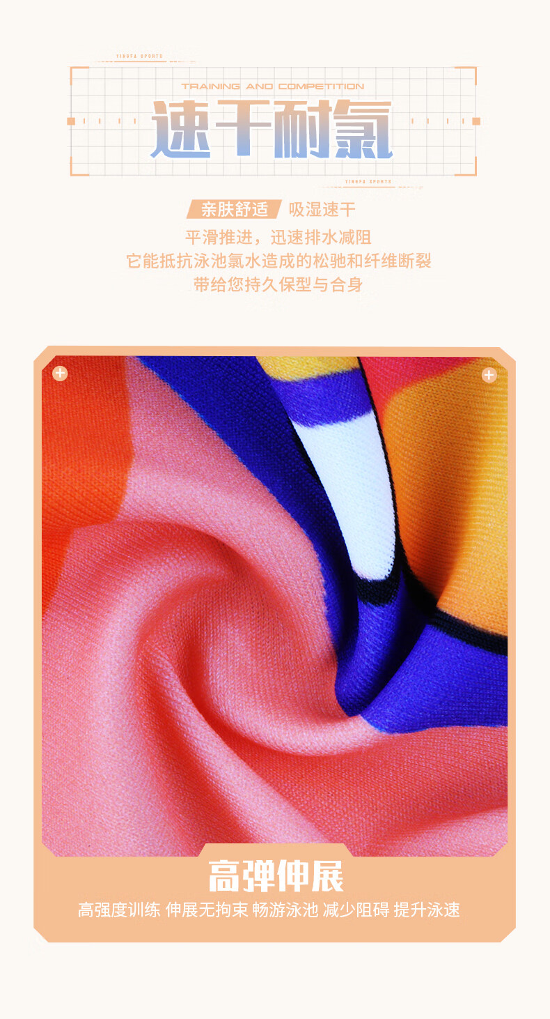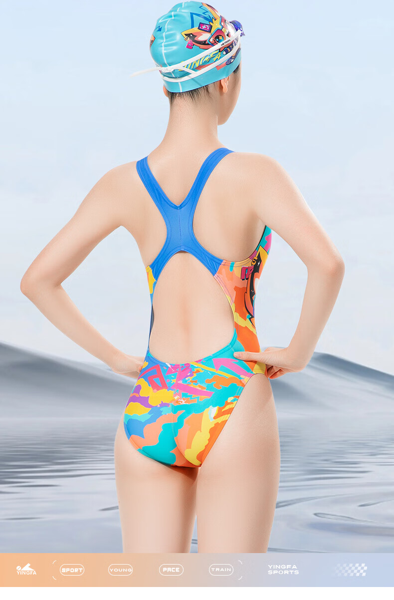 英发(YINGFA)竞技泳衣女新款连体三角防晒透气快干泳衣泡温泉印花显瘦运动泳装 花色 XS (建议125-135cm,15-25kg)