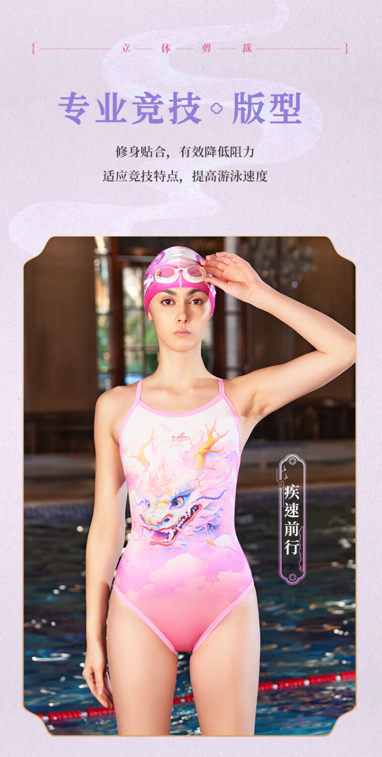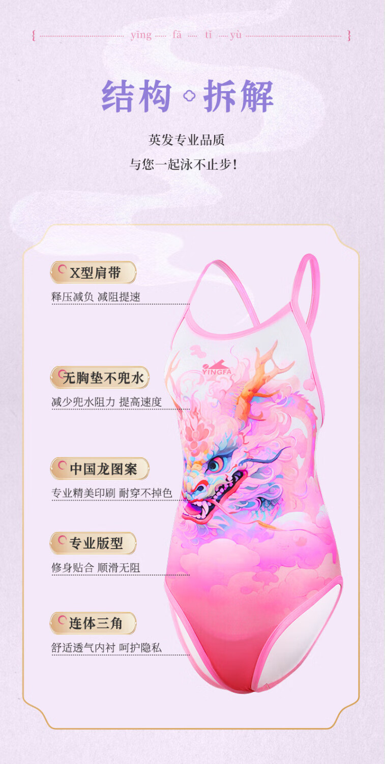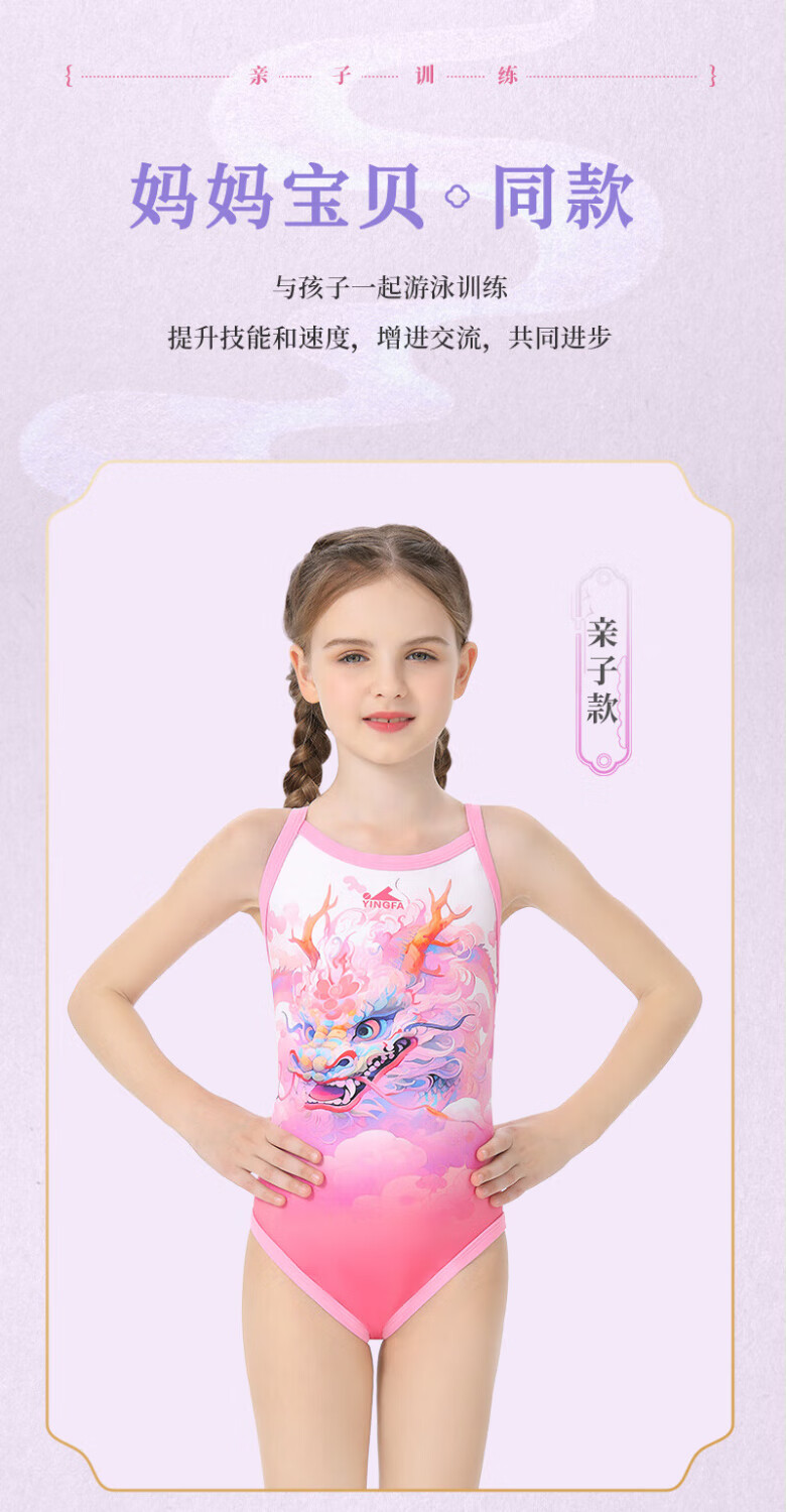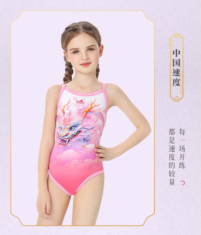 英发(YINGFA)泳衣女士竞速专业训练用泳装女孩亲子连体三角2024新款竞技游泳衣 粉(国潮龙)【竞技款/送乳贴】 M (建议145-155cm,35-45kg)