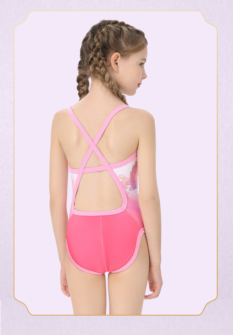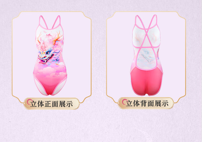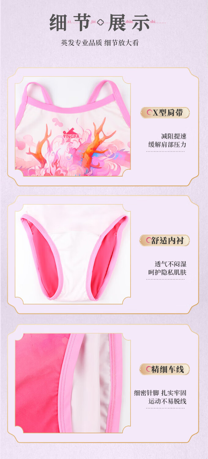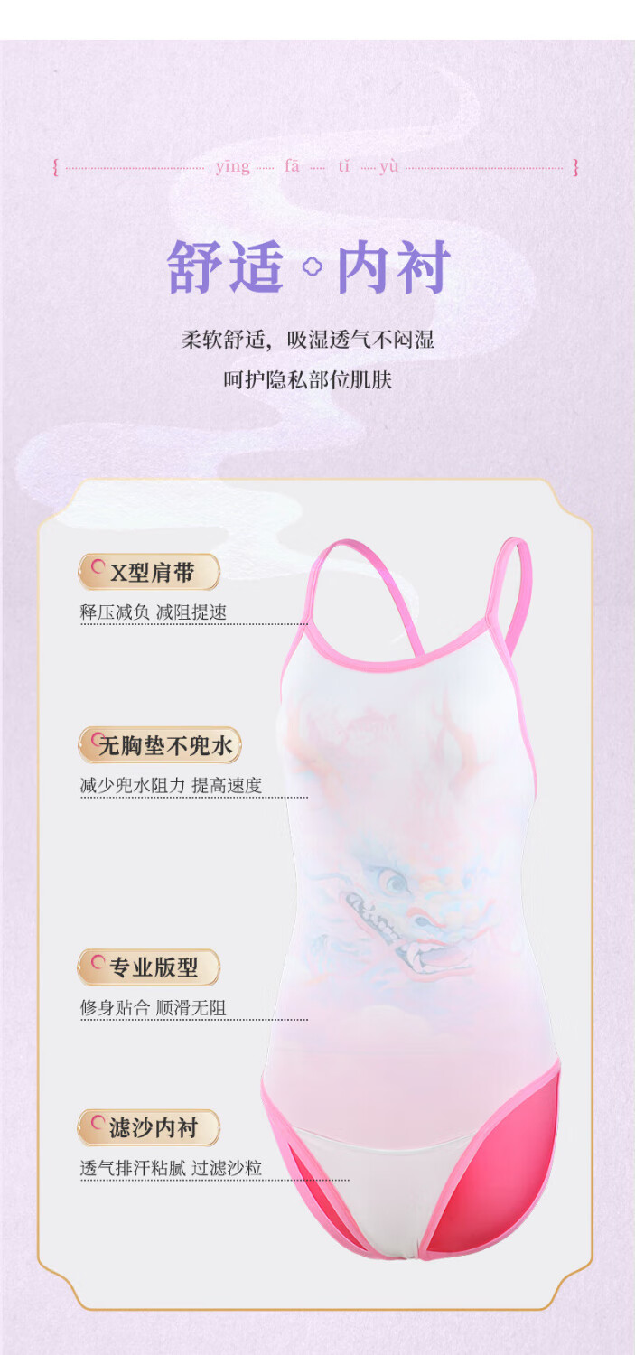 英发(YINGFA)泳衣女士竞速专业训练用泳装女孩亲子连体三角2024新款竞技游泳衣 粉(国潮龙)【竞技款/送乳贴】 M (建议145-155cm,35-45kg)